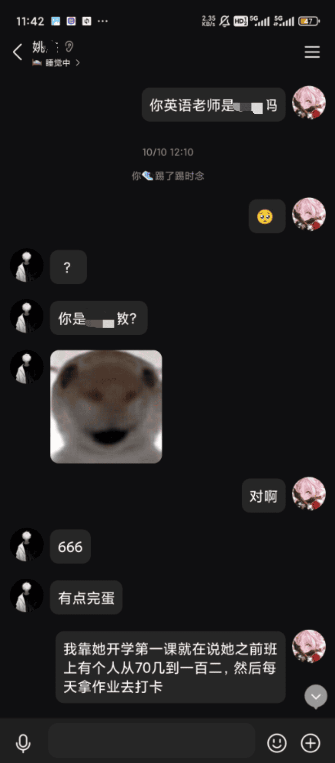 上一届有个学生英语从70到120+,每天都来她那里打卡作业